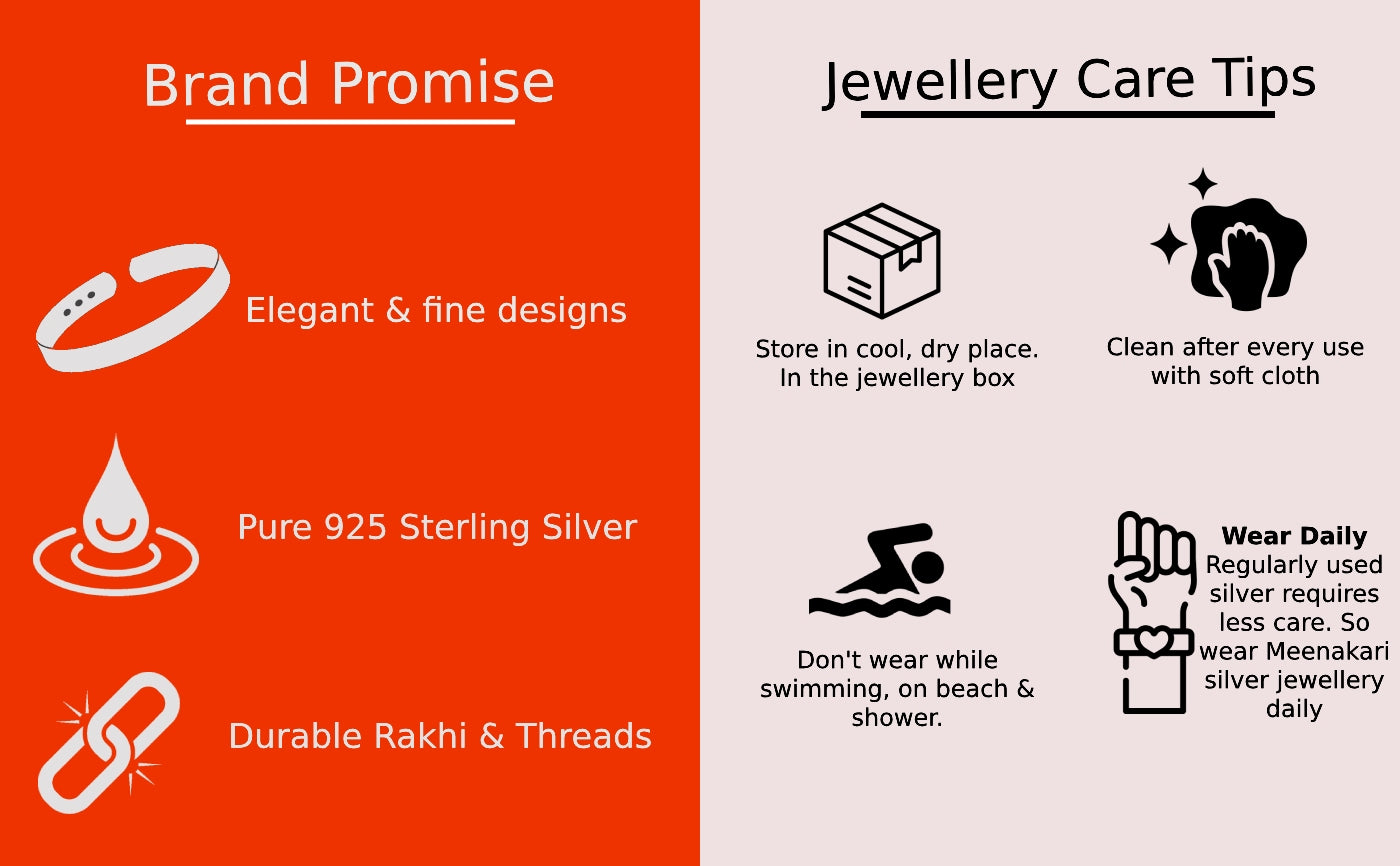 Experience the beauty of India’s first exclusive Silver Rakhi brand. Our premium handmade, fine finish Rakhis are made in Pure 925 Sterling Silver. Meenakari Heritage Jewellery is a well-known & credible brand for Silver Rakhis making it a perfect gift for your precious brother.